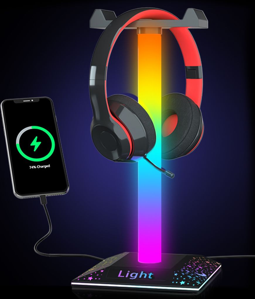 Headset Ständer,10 Farbmodi Typ C Kopfhörerhalter LED Schreibtischlampe